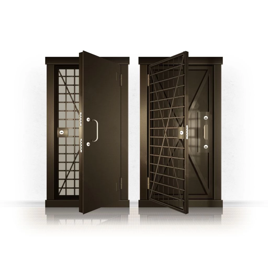 Металлические двери КХО и КХН представляют собой входные блоки, обладающие высоким уровнем взломостойкости и состоят из трех основных элементов: усиленного каркаса, сплошного металлического полотна и решетчатой двери. Дверной блок изготавливается из стального уголка 100*100 мм. Места крепления блока к стене цементируются и закрываются стальными наличниками шириной 40 мм. Крепеж заходит вглубь стены на 80 мм. В конструкции внешней створки монтируются ребра жесткости, для обшивки используется сталь толщиной не менее 3 мм. Внутренняя решетка изготавливается из прутка диаметром 16 мм. Размер ячеек решетки должен составлять не более 15 на 15 см. В точках пересечения прутья надежно приваривают друг к другу. В КХО и КХН необходимо поддерживать определенную температуру и влажность. Для этого внутреннее пространство глухой двери заполняется теплоизоляционным материалом, а по периметру двери приклеивается уплотнитель. Такие двери оборудуются замками с повышенным уровнем взломостойкости. Специализированные двери КХО и КХН в Воркуте могут быть оснащены сигнализацией, в конструкции могут быть проушины для навесного замка и элементами для опечатывания. Если идет речь о двери в комнату хранения оружия, в створке оборудуется окно для выдачи оружия и спец. средств, которое накрывается стальной дверцей.